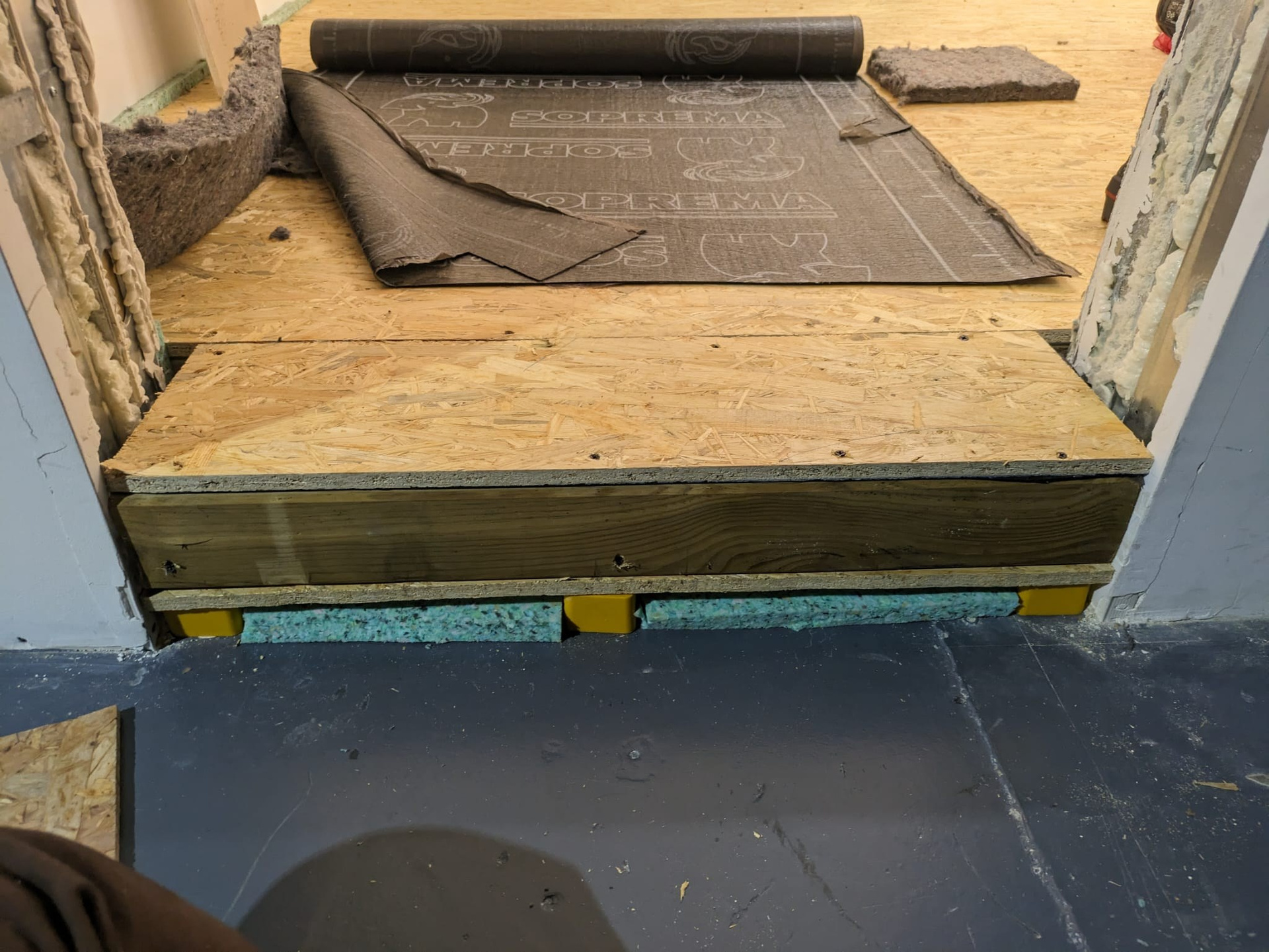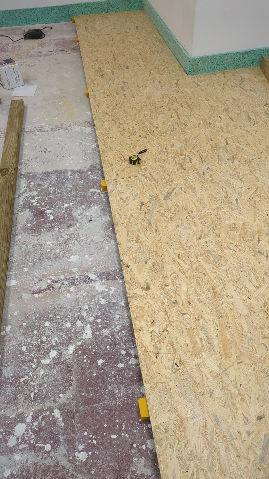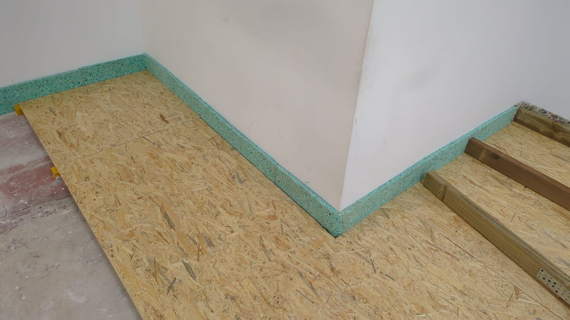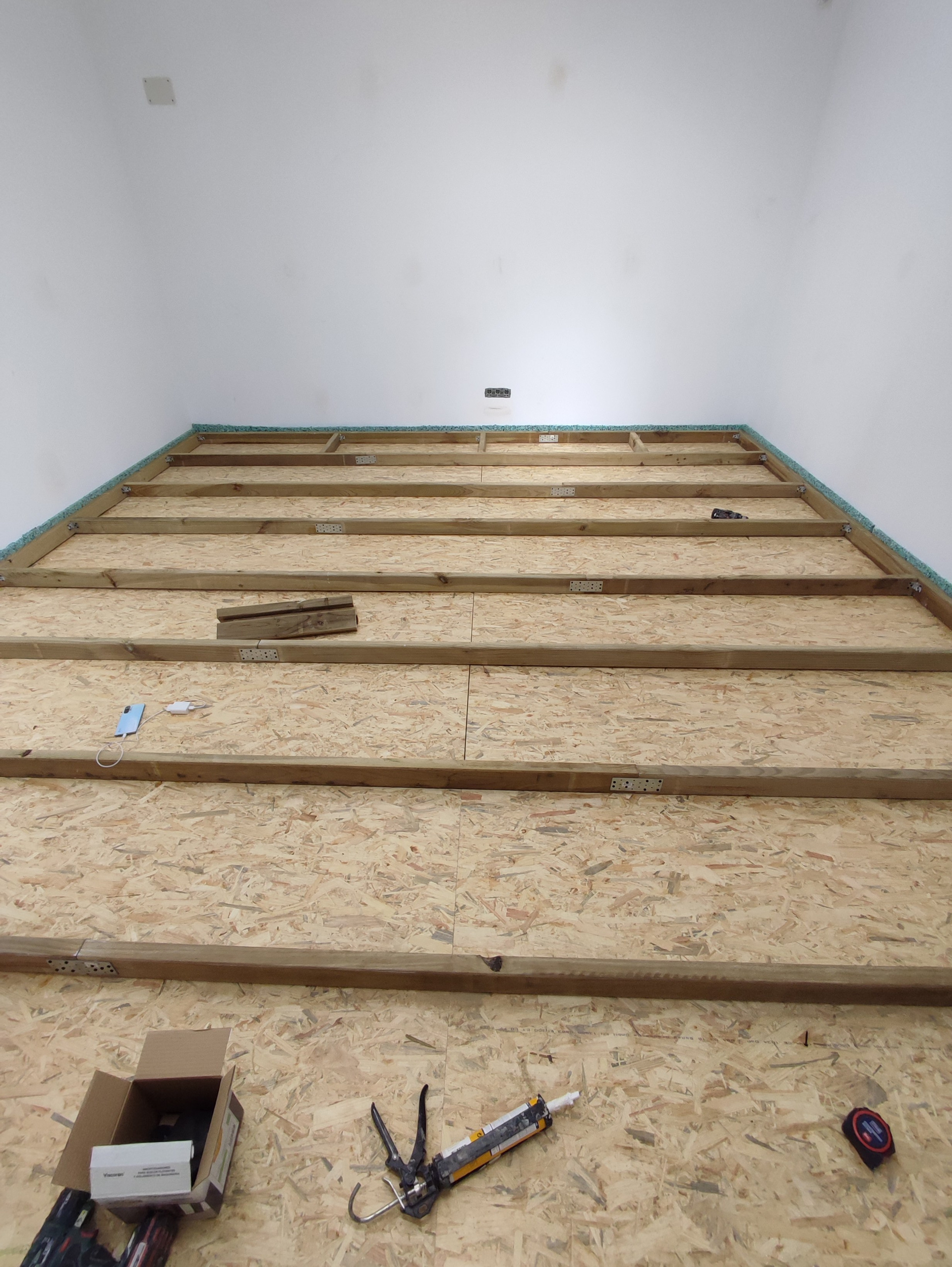а. Instalación de suelo sobre almohadillas amortiguadoras.