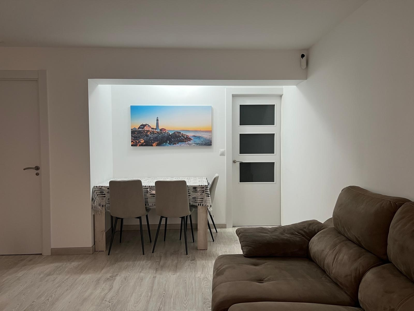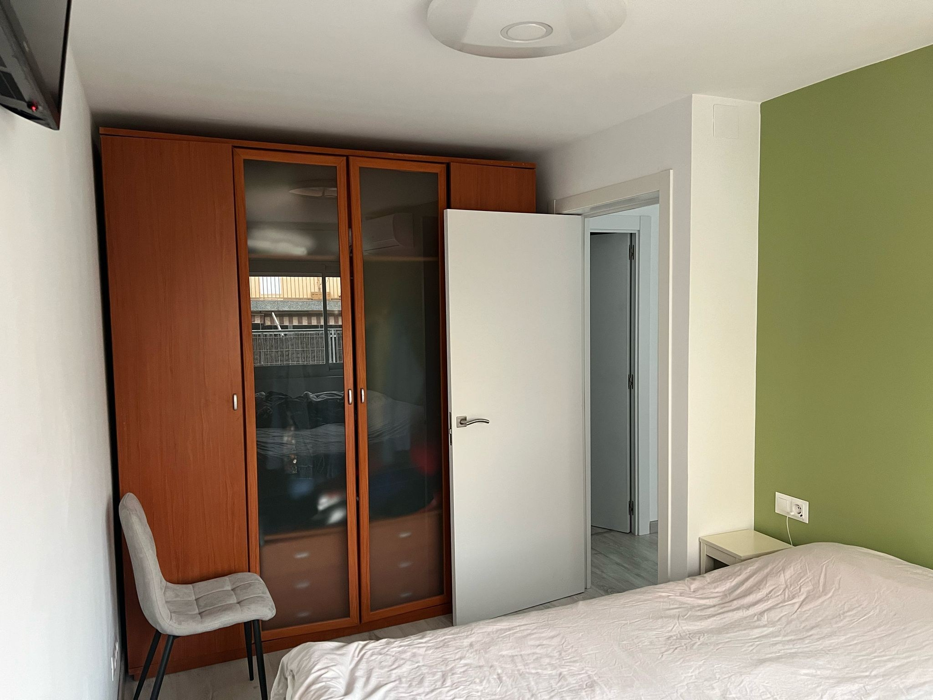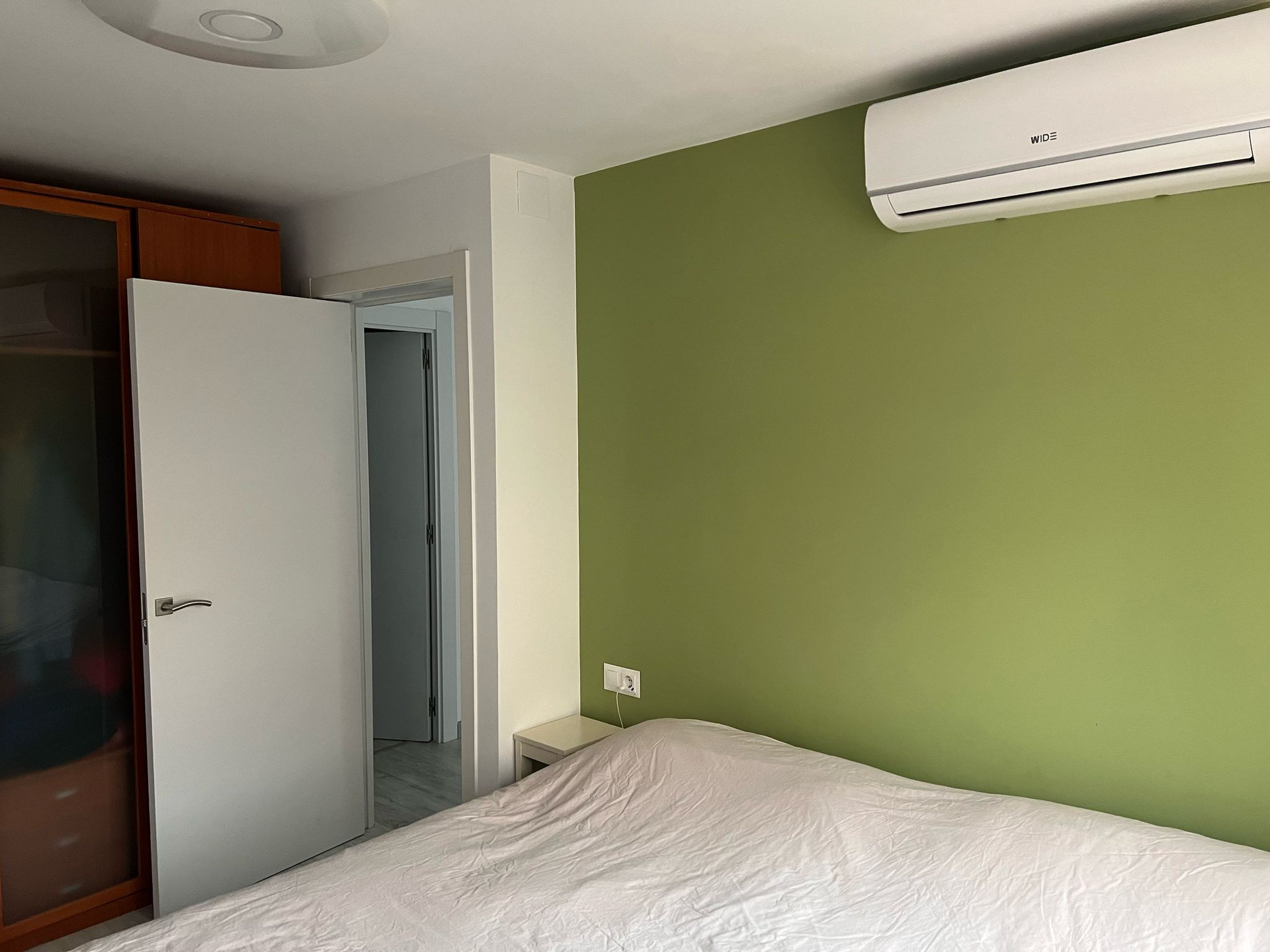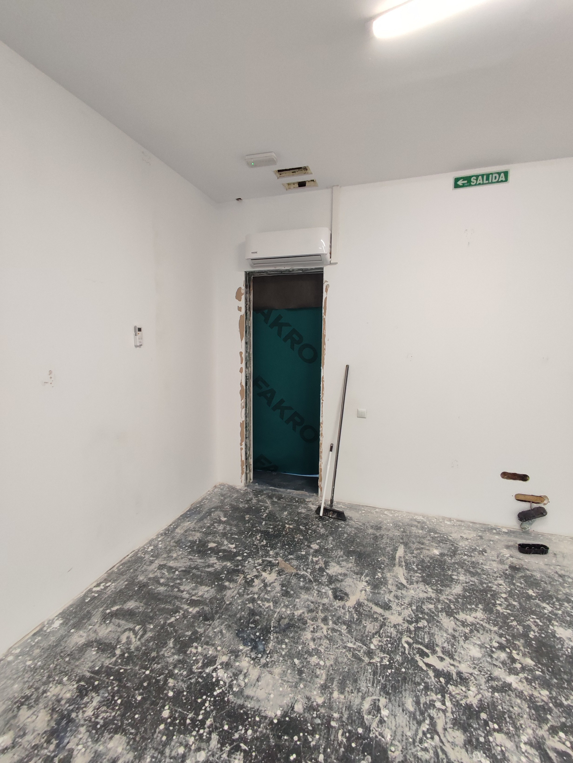 Fase 2: Salón. En la segunda fase, el enfoque principal será la insonorización y la modernización del salón. Se realizará la insonorización de las paredes y el techo, así como el aislamiento de la viga de acero del forjado para minimizar vibraciones y ruidos. También se llevará a cabo la demolición del tabique y del armario empotrado, lo que permitirá crear un espacio más amplio y luminoso. Al mismo tiempo, se sustituirá toda la instalación eléctrica y se añadirá iluminación adicional para mejorar la distribución lumínica del espacio. El aire acondicionado se reubicará en una nueva posición para una mejor distribución del aire. Se sustituirán tres puertas por otras con mejores características de aislamiento acústico, lo que incrementará la protección acústica general. Finalmente, se procederá a cambiar una de las ventanas para mejorar el aislamiento del ruido y la eficiencia energética.